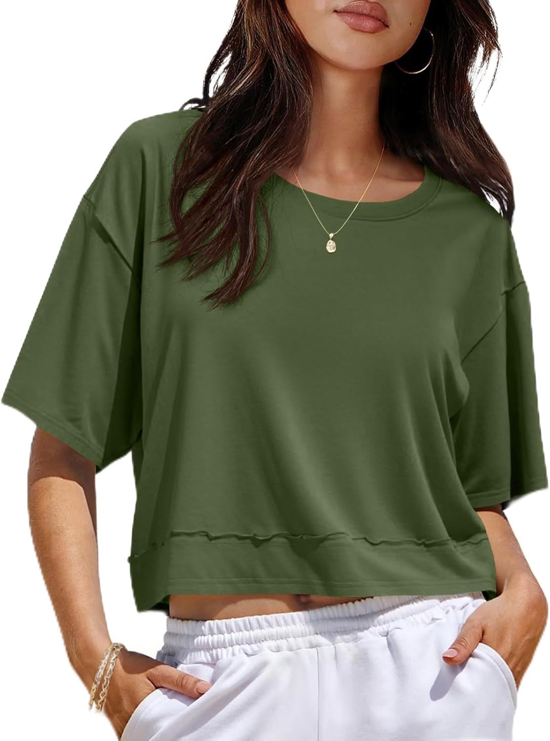 UNCLECAT Womens Short Sleeve Cropped T Shirts Crew Neck Trendy Tops Casual Solid Loose Fit Basic Tees