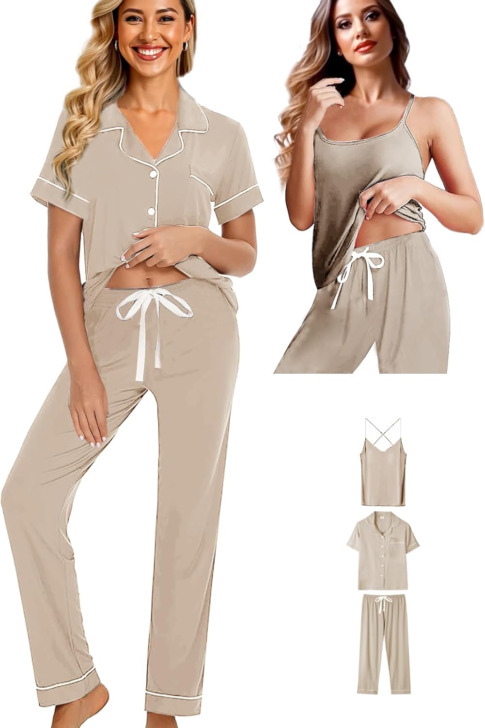 Womens 3Pcs Soft Pajama Sets Sexy Camisole Lingerie XS-4XL Knit Pajamas Set Sleepwear Pjs Nightwear Lounge Sets