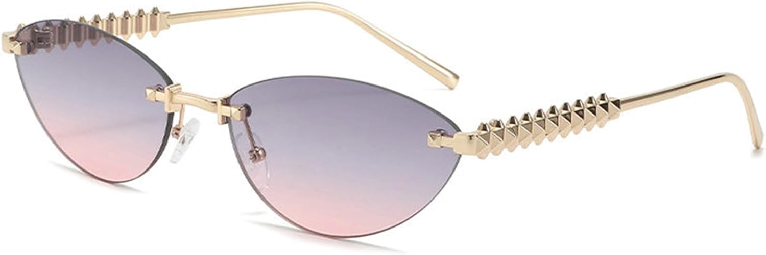 willochra Trendy Rimless Cat Eye Metal Sunglasses Vintage Small Oval Outdoor Eyewear UV400 Protection for Women Men