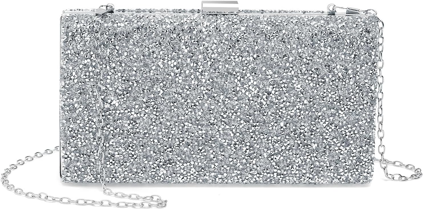 - [Capable]: The Clutch Purse Size(LxWxH) is 22 x 5 x 12 cm / 8.66 x 1.97 x 4.72 inches. The Clutch purse material is crystal rhinestone, Its color is Silver, Long strap length is 120 cm / 47.24 inch; Short strap length is 42 cm/ 16.54 inch . The evening bag is enough to hold the most needed items, such as makeup brushes, mobile phones, cards, money, car keys, and small wallets, ensuring you are prepared for any occasion.