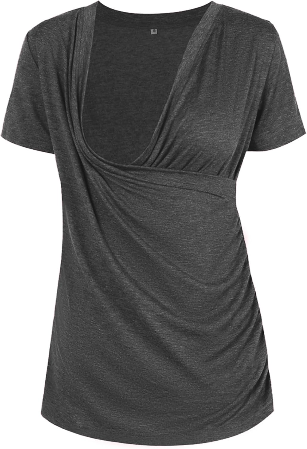 Liu & Qu Womens Maternity Nursing Tops Short Sleeve Breastfeeding Shirts Heather V Neck Clothes