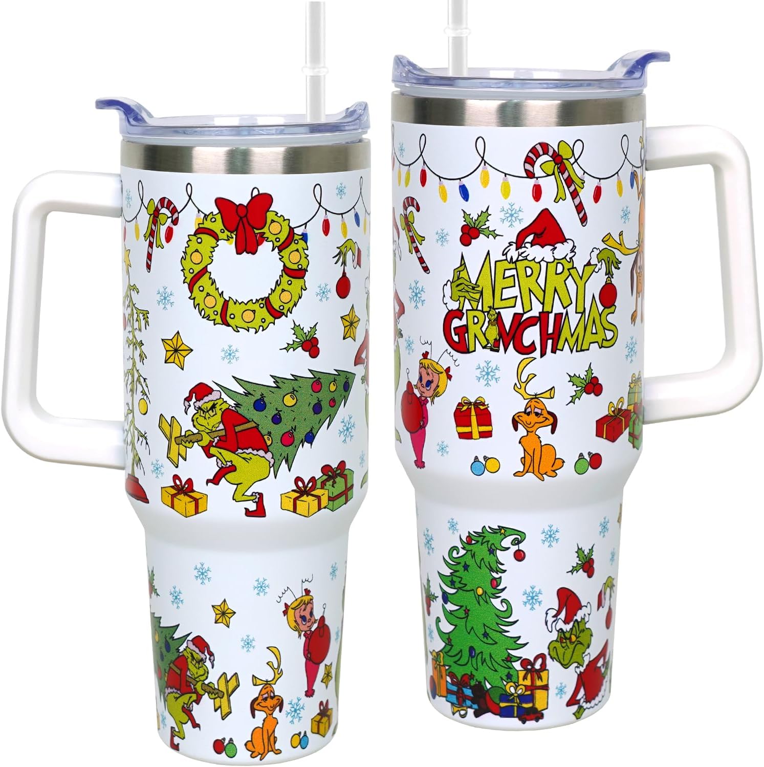 - HIGH QUALITY - Christmas cups for adults is made of double-layer vacuum insulation and 18/8 stainless steel, sturdy and rust-resistant, keeps your drinks hot or cold for hours. Features a handle design, spill proof lid and reusable straw for easy drinking.