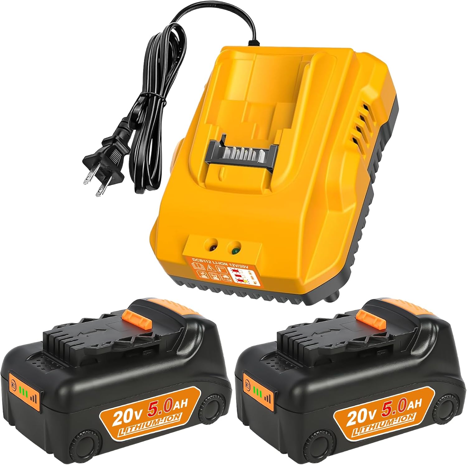 - [Smart Combo Kit: 2 Batteries + 1 Charger] This kit includes two high-performance replacement batteries and one compatible charger, fully compatible with DeWalt 20V Max series tools (models such as DCB200/DCB201 included). Offers double the power at a competitive price, perfect for professionals requiring continuous operation. The charger features an automatic shut-off function to prevent overcharging and extend battery life.