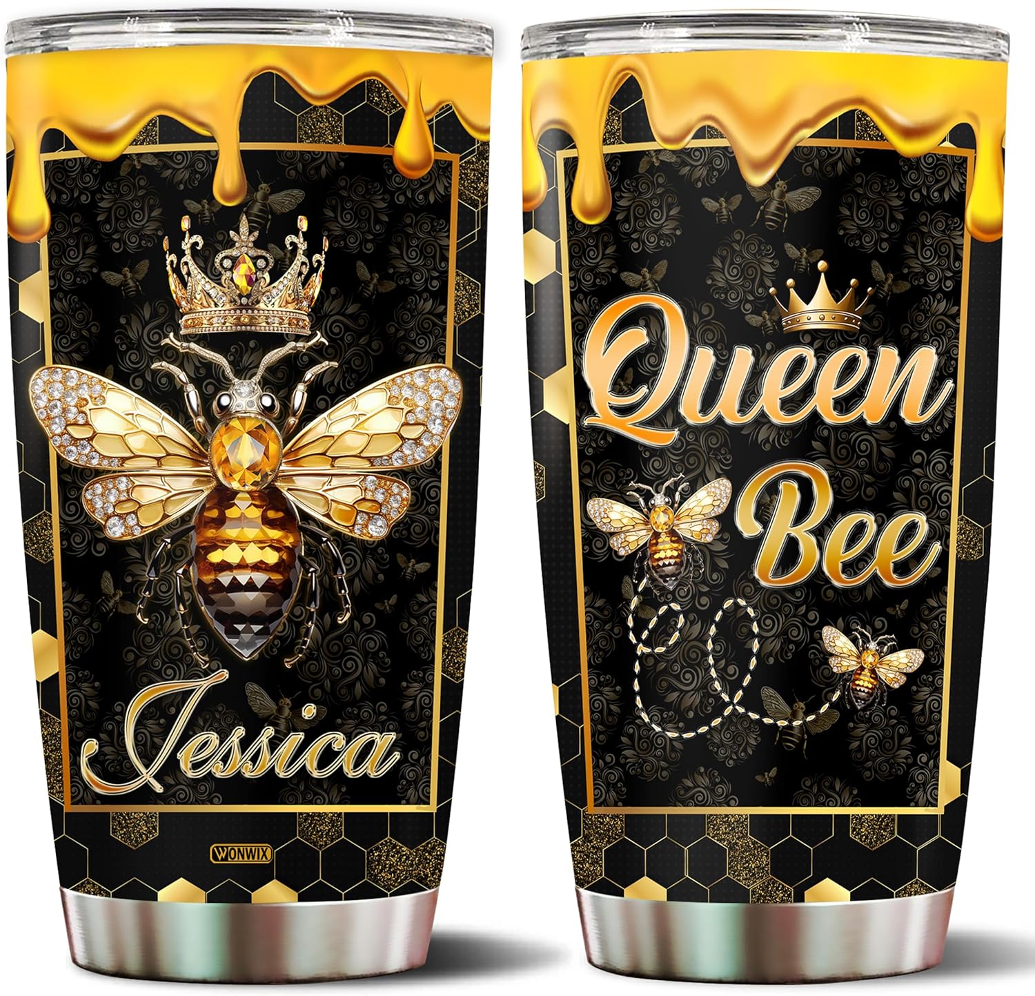 Personalized Queen Bee Tumbler Gifts for Women Jewelry Drawing Travel Cup Mug Gift for Mom Daughter Girls Sister Coffee Insulated Stainless Steel 20oz With Lid