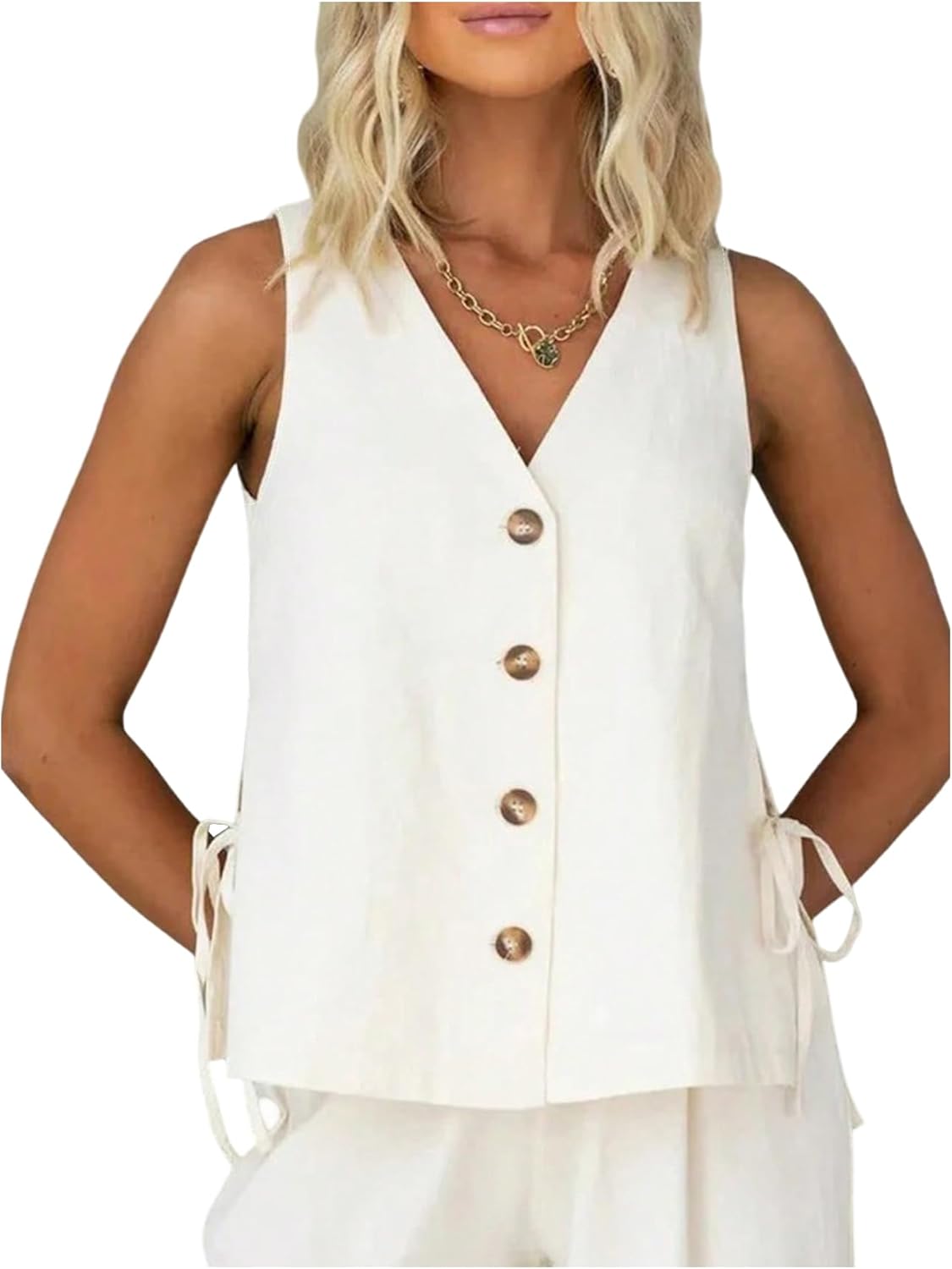 GORGLITTER Women's Button Down Vest Shirt V Neck Sleeveless Split Tie Side Going Out Tops