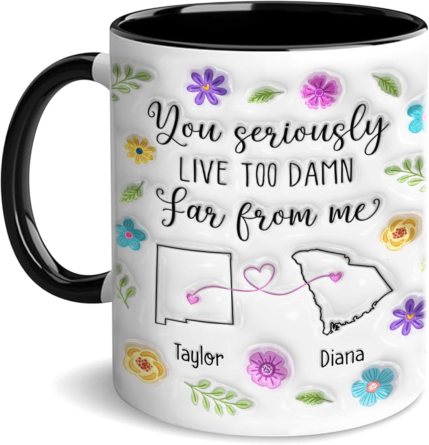 - PERSONALIZED LONG DISTANCE MUG: You Seriously Live Too Damn Far From Me mug is a special gift that perfectly blends humor and love. Personalize it to make it even more meaningful whether it’s for your daughter, best friend, or a loved one who lives miles away.
