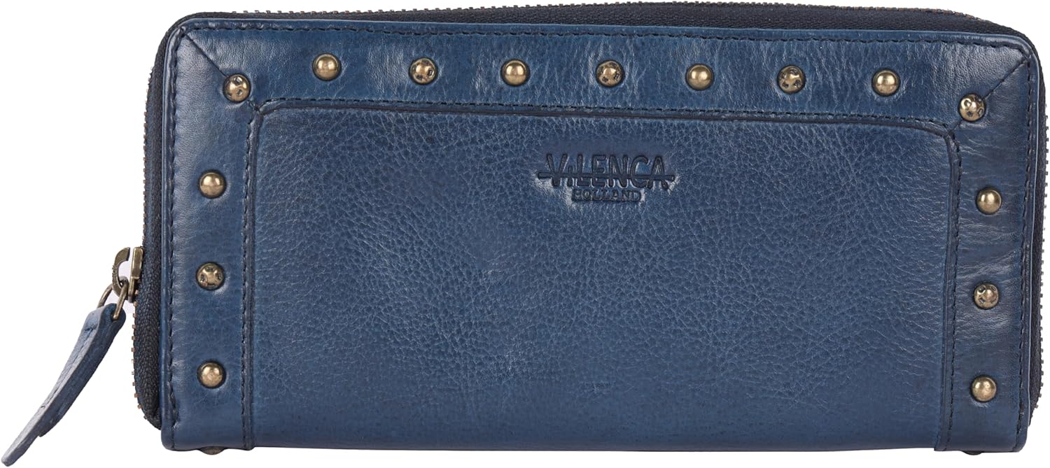 Vintage Genuine Italian Leather Boho Studded Wallet – Zipper Coin Purse & Credit Card Holder for Women (Navy)