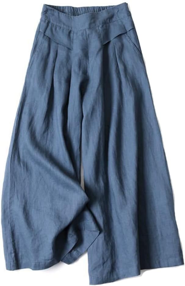 Plustrong Women's Culottes Linen Cropped Wide Leg Pants Elastic Waist Casual Palazzo Pants