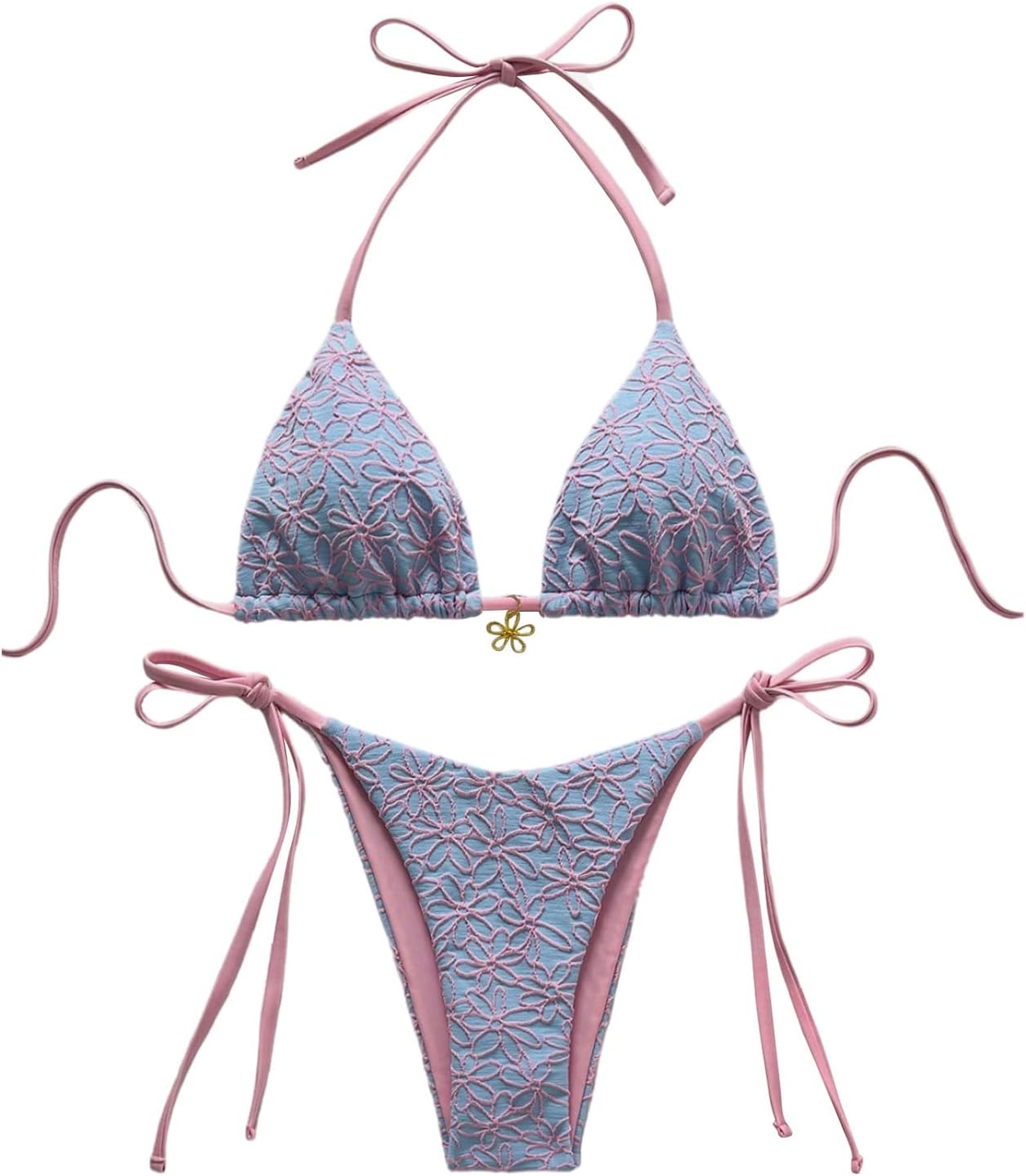 Women's 2 Piece Halter Bikini Set Y2k Floral Textured Tie Side Triangle Bathing Swimsuits Vacation Outfits
