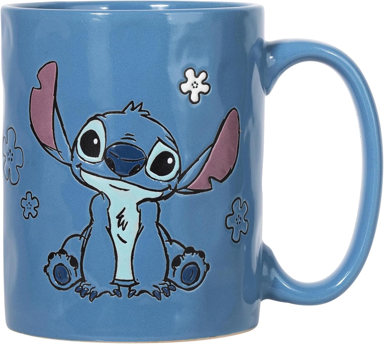 Silver Buffalo Disney Lilo & Stitch Blue Wax-Resist Ceramic Pottery Coffee Mug | Holds 17 Ounces