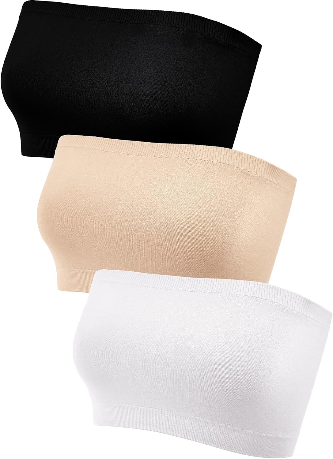 HESTYA Women's Strapless Bralette Bra Seamless Bandeau Soft Stretchy Non-Padded Bandeau Tube Top Sport Bra, 3 Pieces