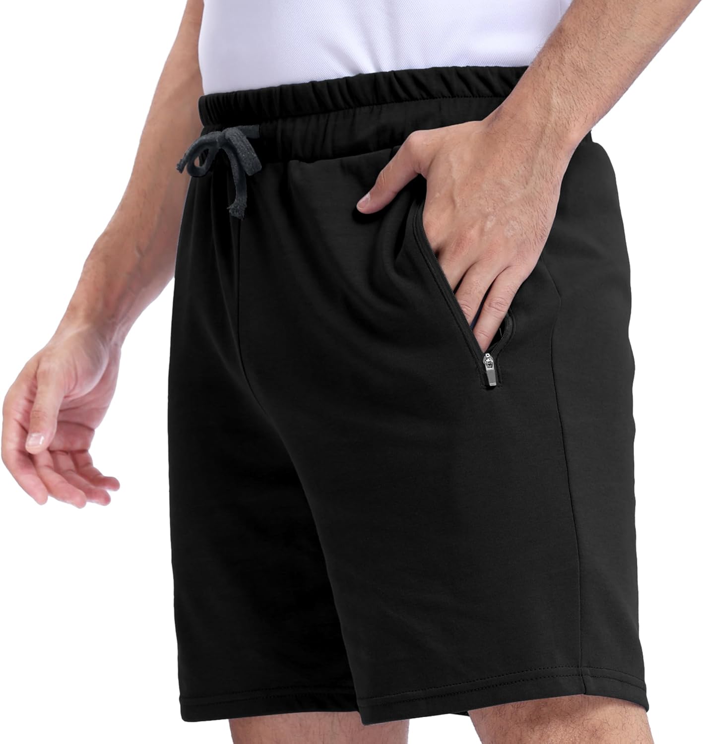 Men’s Shorts 100% Cotton with Zipper Pockets – Lightweight and Soft Casual Wear for Lounge, Sleep, Workout