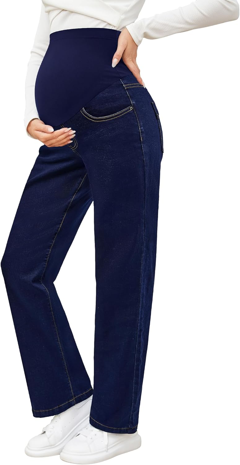 fitglam Women's Maternity Jeans Straight Leg Relaxed Fit Over Belly Pregnancy Denim Work Pants Maternity Clothes with Pockets