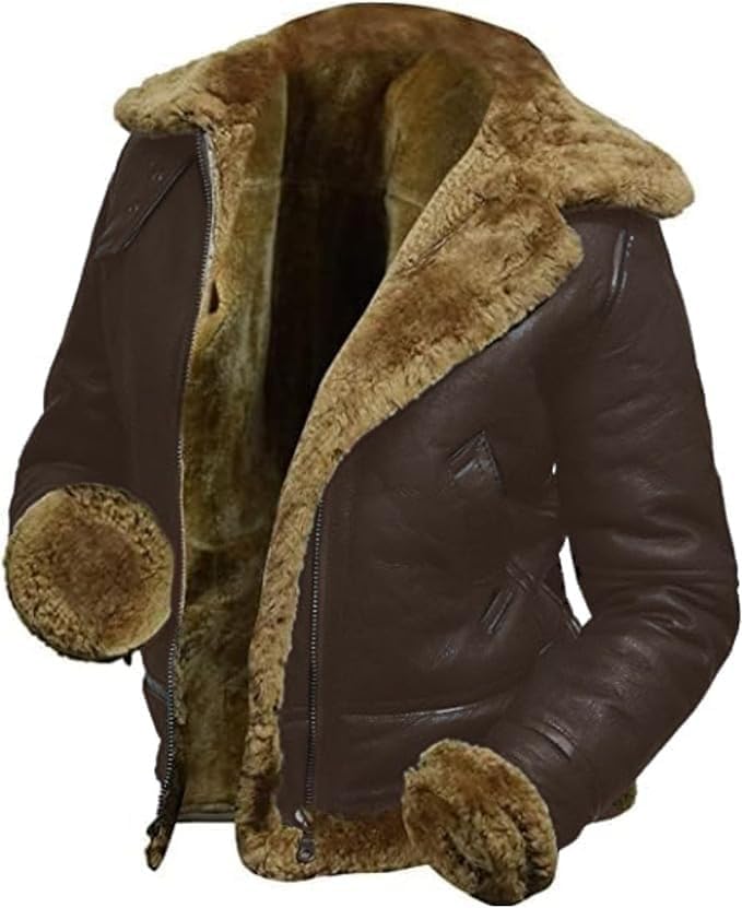 Womens B3 Shearling Bomber Jacket Raf Aviator Pilot Genuine Sheepskin Brown Leather Jacket Removable Hoodie