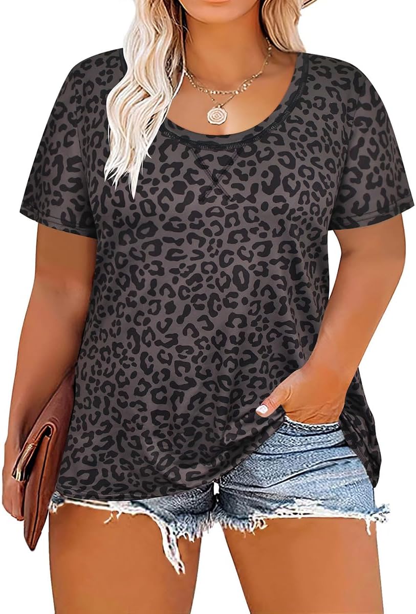 CARCOS Plus Size Tops for Women Short Sleeve Shirt Summer Star/Leopard/Tie Dye/Flower Crewneck Pullover Tunic XL-5XL
