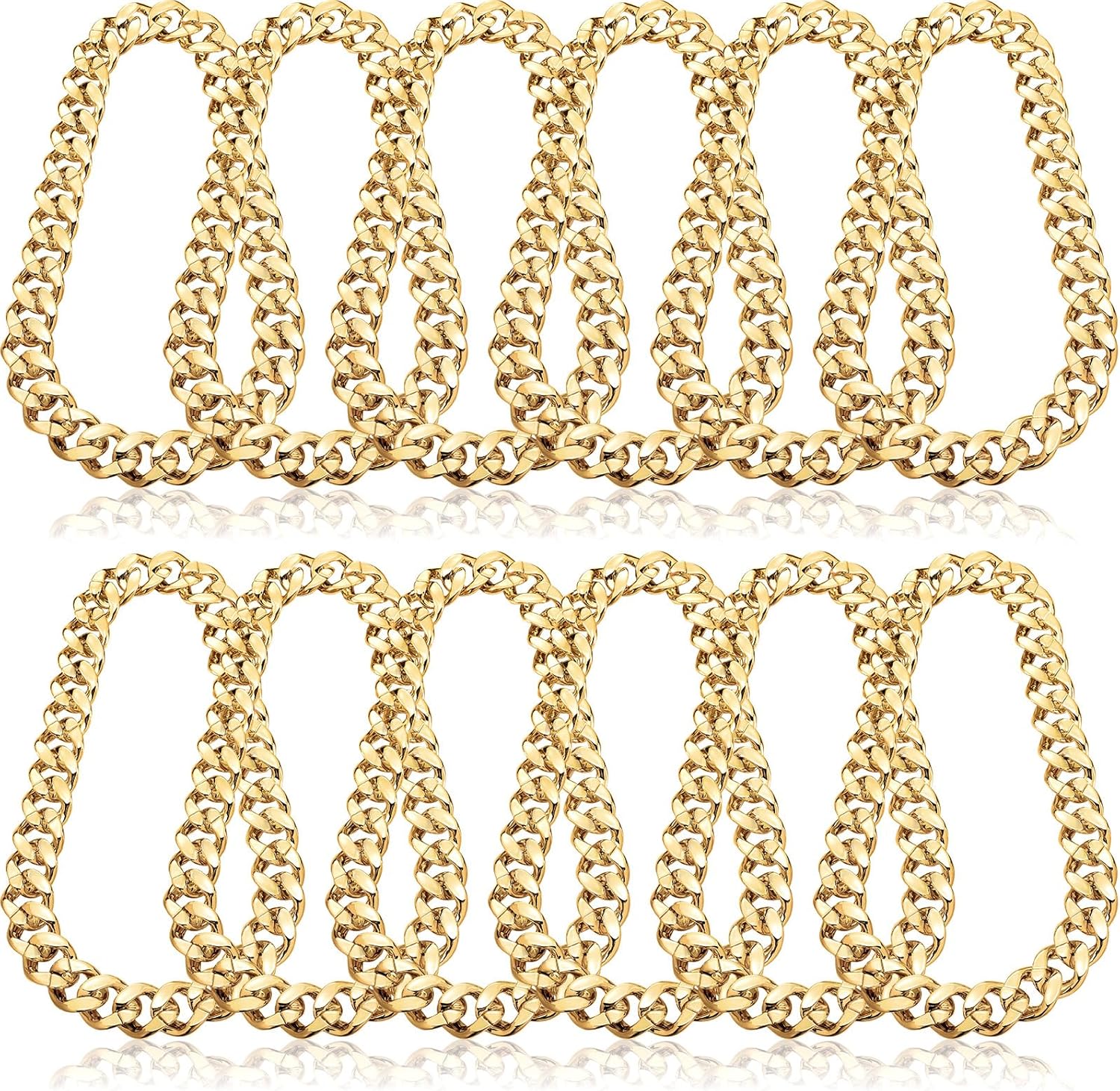 Jexine 12 Pcs Halloween Costume Rapper Chain, Hip Hop Chain Bulk Fake Necklace for Cosplay Men Women 80s 90s Punk, 32 Inch