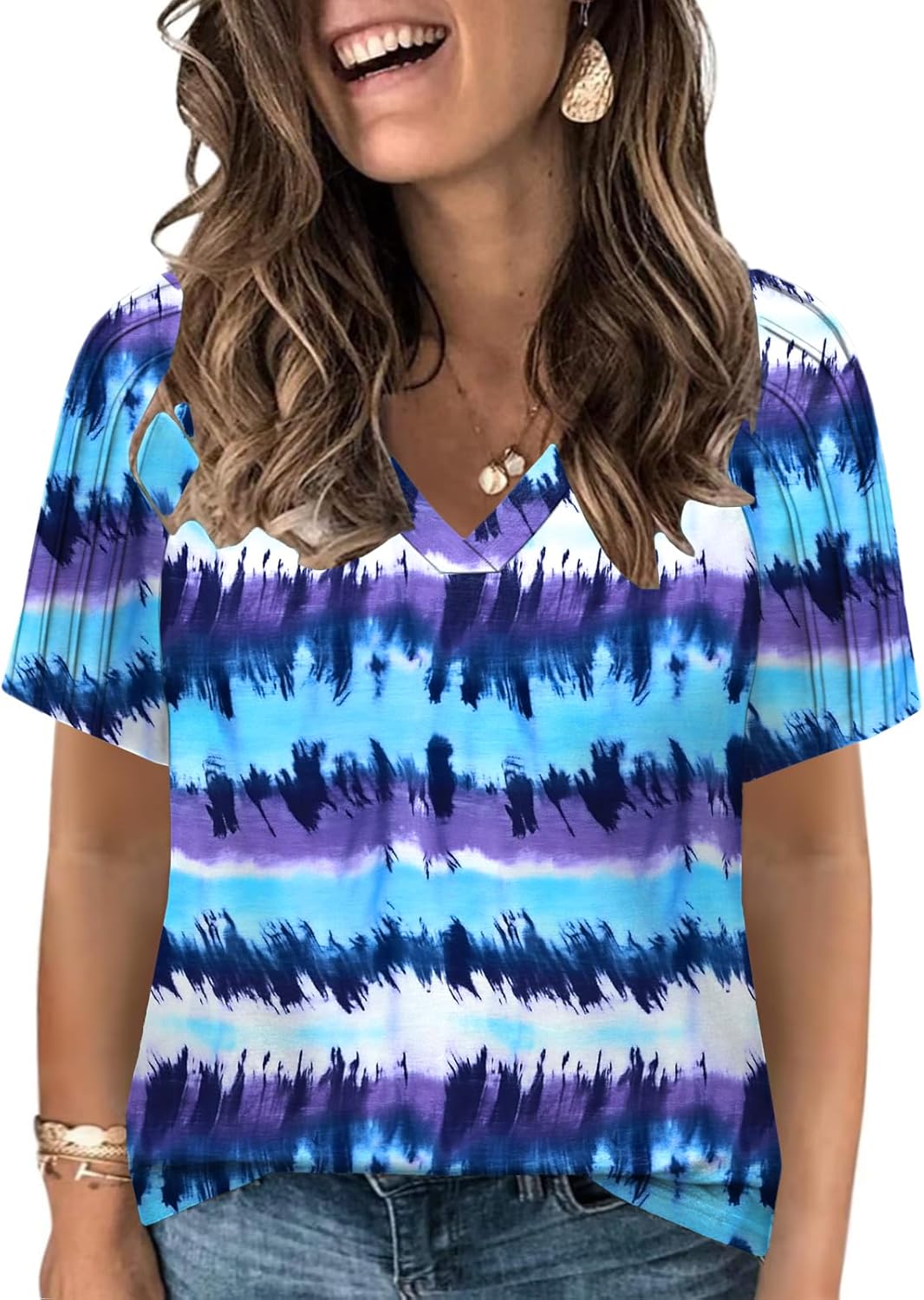 VISLILY Womens-Plus-Size-Summer-Tops Trendy V Neck T Shirts Casual Pleated Short Sleeve Dressy Blouses Tunics Cute Tee XL-5XL