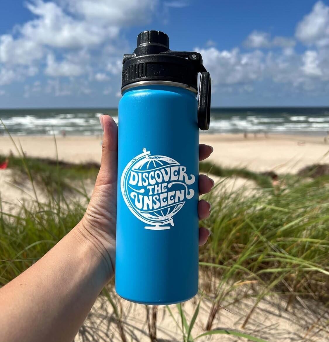 Discover the Unseen Personalized Stainless Steel Sports Hydro Water Bottle, Vacuum-insulated, 18 or 32 ounce Size, Keeps Liquids Pipping Hot or Icy Cold! (Straw or Mouthtop). Adventure Bottle.