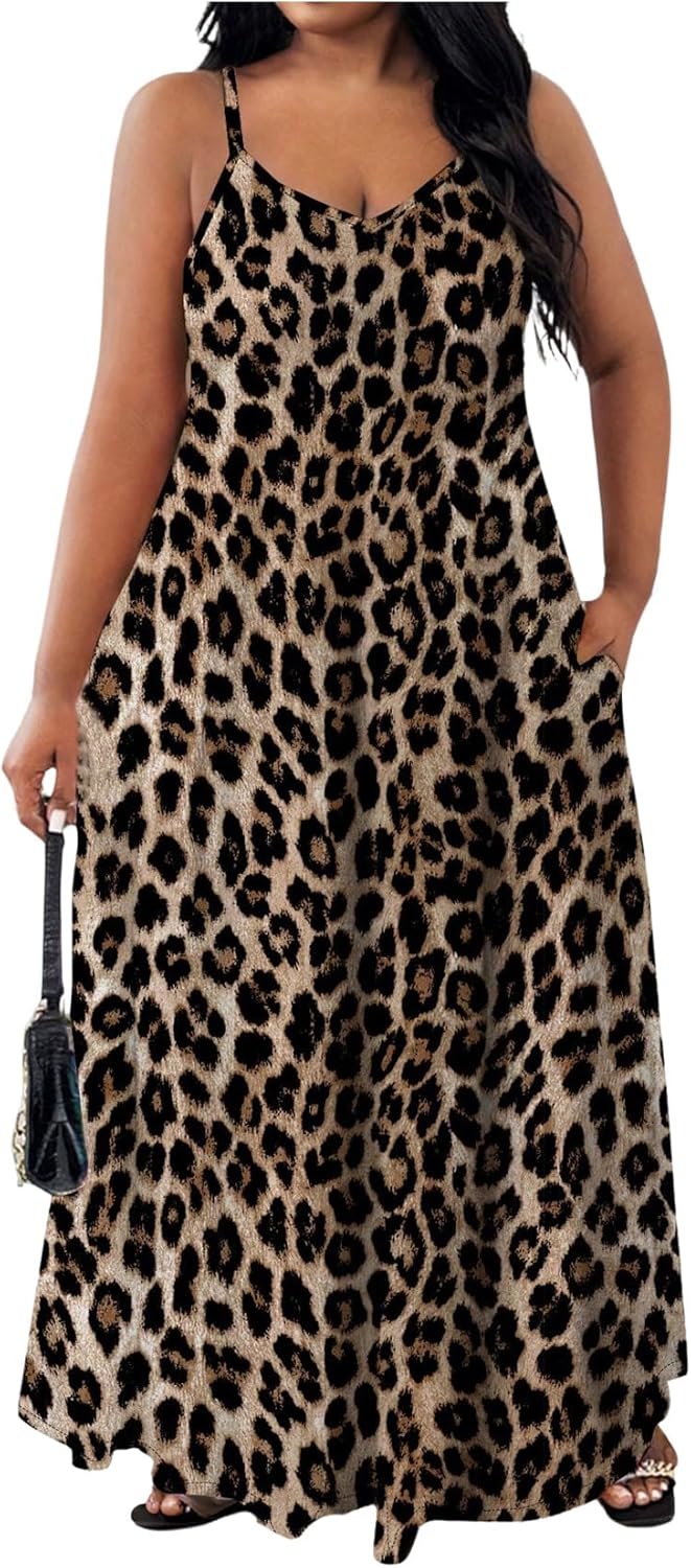 Floerns Women's Plus Size Leopard Cami Dress Spaghetti Strap Cheetah Flowy Maxi Dresses