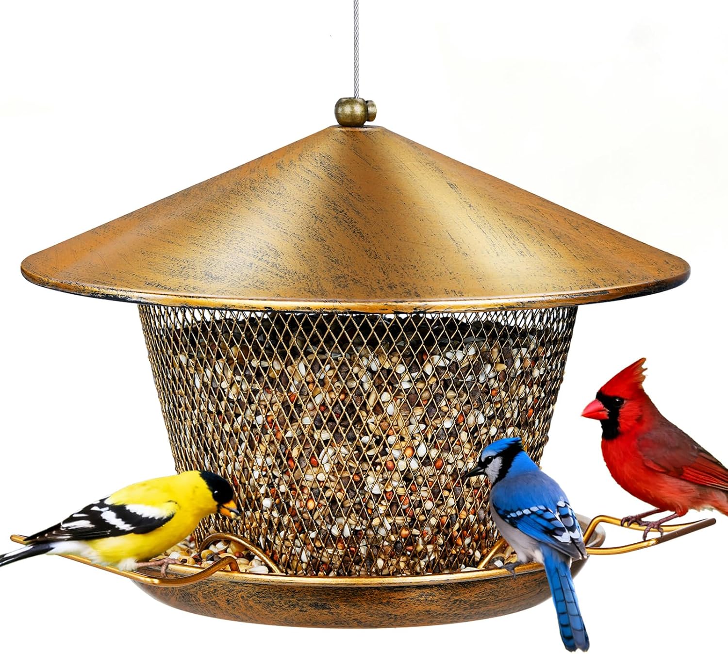 - Durable Bird Feeder: All-metal design with a sturdy and durable structure makes this bird feeder for outdoor weather-resistant and long-lasting. It is also chew-proof, which helps prevent damage from squirrels and other animals, reducing your bird feeding costs