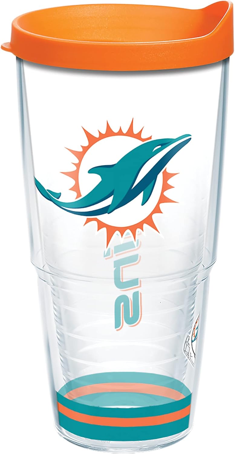 Tervis Made in USA Double Walled NFL Miami Dolphins Arctic Insulated Tumbler Cup Keeps Drinks Cold & Hot, 24oz, Clear