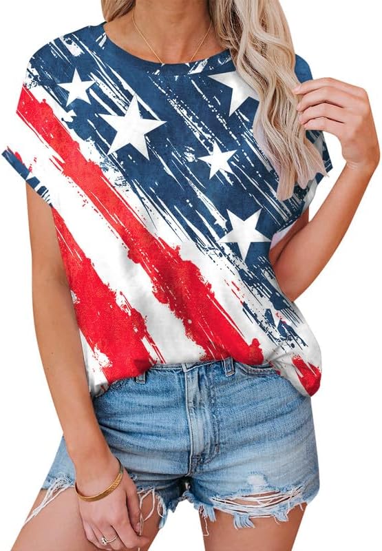 For G and PL Women's 4th of July American Flag Loose T-Shirts Short Sleeve Star Stripes Patriotic Tops