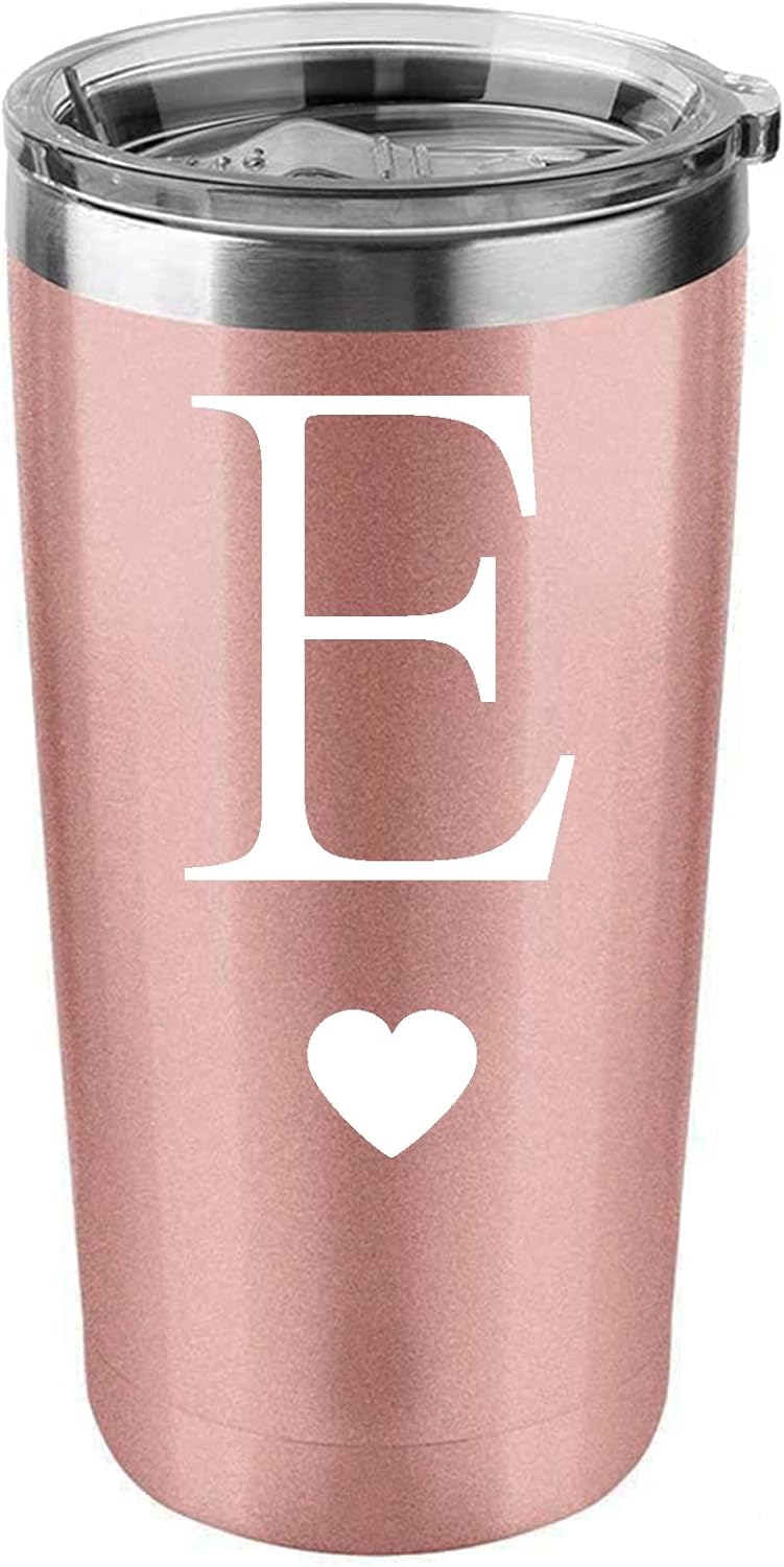 Personalized Initial Gifts 20 Ounces Stainless Steel Travel Car Tumbler Rose Gold Insulted Mug Wedding Bridesmaid Birthday Graduation Gift for Men Women Monogrammed Gift (E)