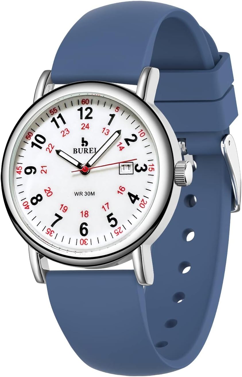 BUREI Women Men Wrist Watches for Nurse Medical Professionals Students Women Men, Waterproof 12/24 Hour Military Time Luminouse Easy Read Dial,Colorful Silicone Band.