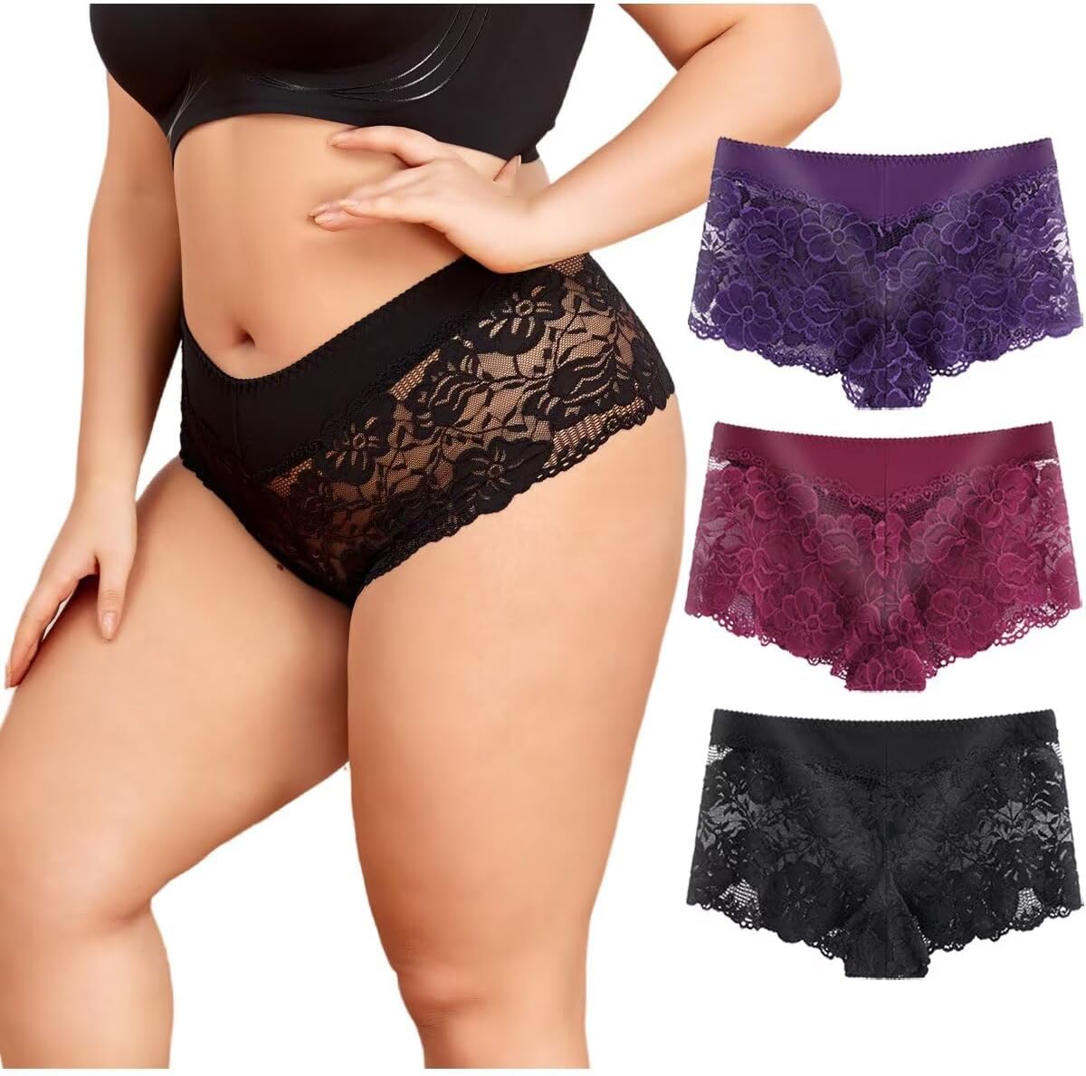 Timothee Women's Underwear Regular & Plus Size Panties Lace Boyshorts Hipster Panty Soft Cheeky Panties - Pack 3/4