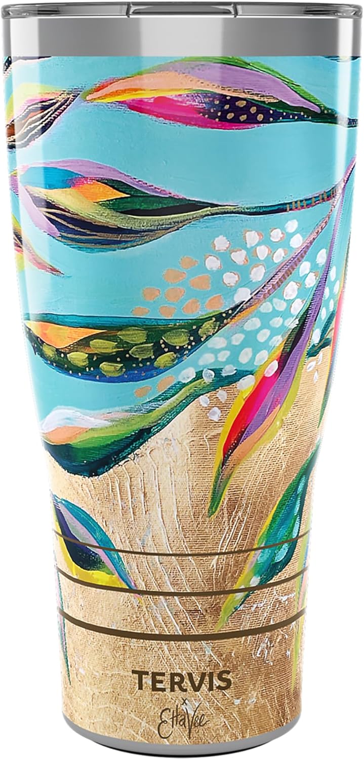Tervis Traveler EttaVee Golden Leaves Triple Insulated Tumbler Travel Cup Keeps Drinks Cold & Hot, 30oz, Stainless Steel