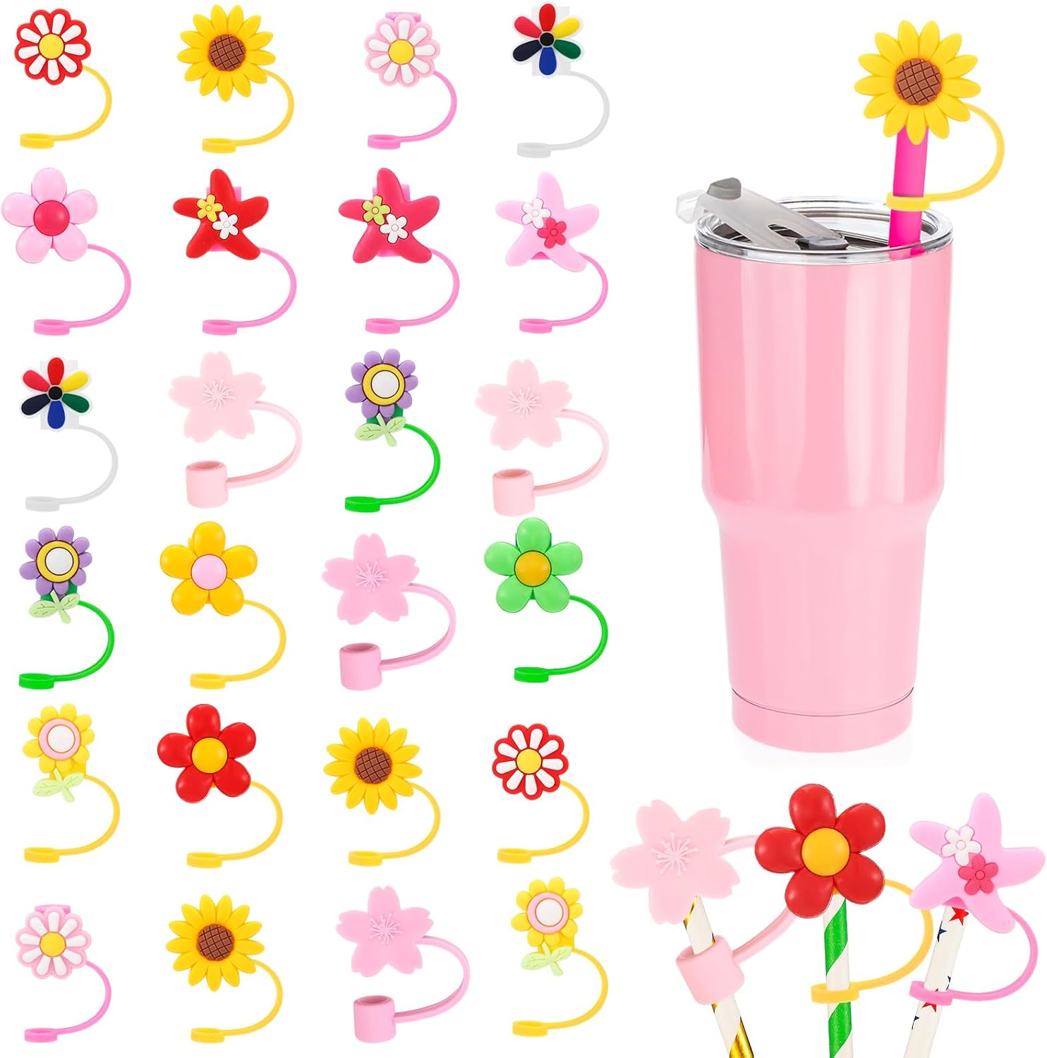 - Rich Quantity and Cute Shape: our cute silicone reusable drinking straw tips set contains 24 pieces of straw covers; These cute straw hood shapes can make your straws and cups more delicate; Elegant colorful flowers shape can show your personality or mood very well A variety of cute patterns are easy to distinguish the crowd to avoid the embarrassment of holding the wrong cup