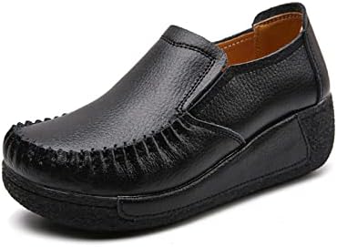 Women's Platform Leather Loafers, Breathable Non-Slip Good Arch Work Nurse Shoes, Rocking Walking Slip-On