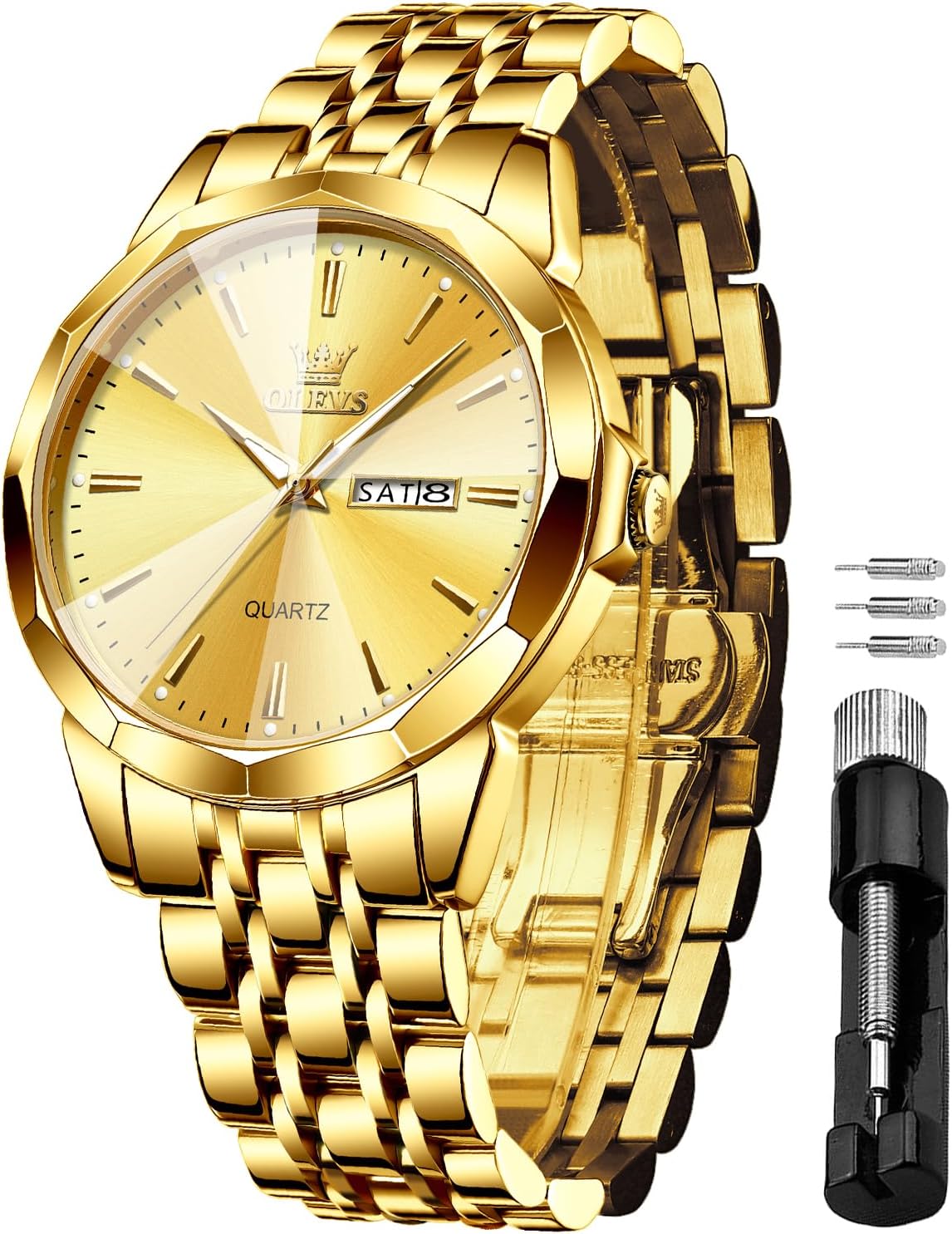 OLEVS Watches for Men Waterproof Diamond Business Luxury Dress Analog Quartz Stainless Steel Luminous Day Date Two Tone Casual Men's Wrist Watches Gift