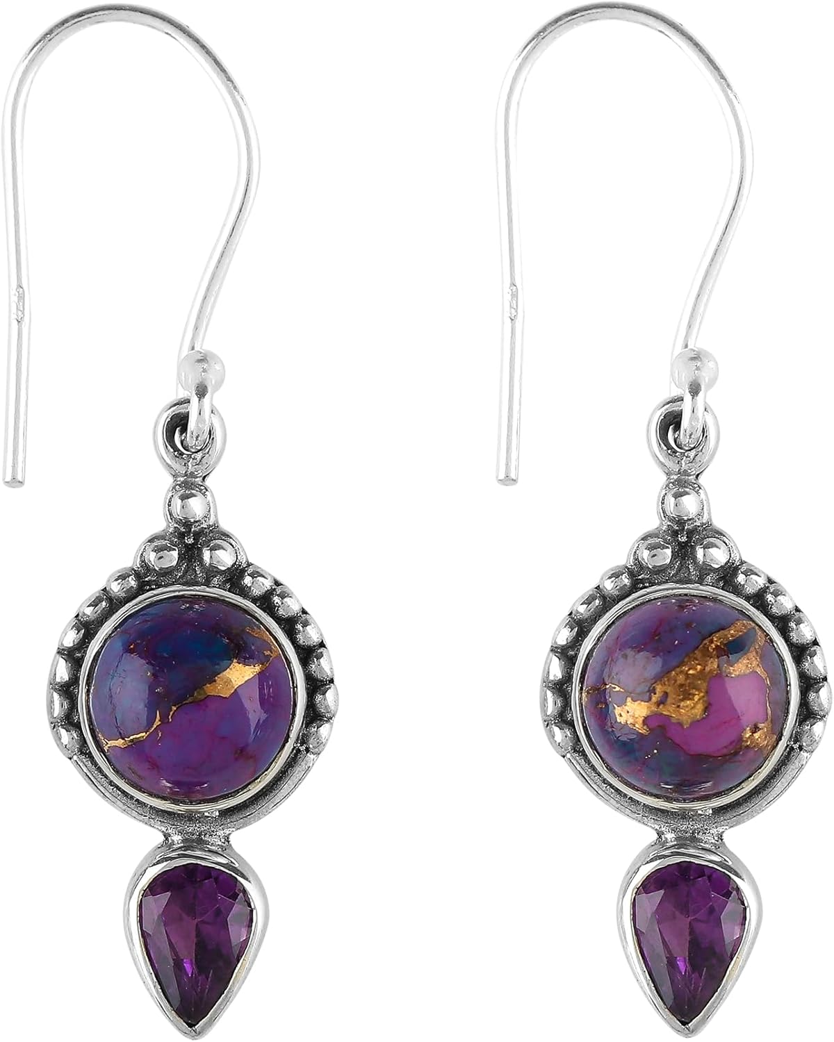 Purple Turquoise & Amethyst Gemstone, 925 Sterling Silver Earrings, Handmade, Fashion Jewelry, Women Earrings, Gifts