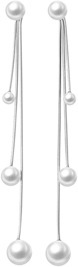 SLUYNZ Sterling Silver Pearls Dangle Earrings Chain for Women Teens Wedding Dangle Earrings Long Tassel