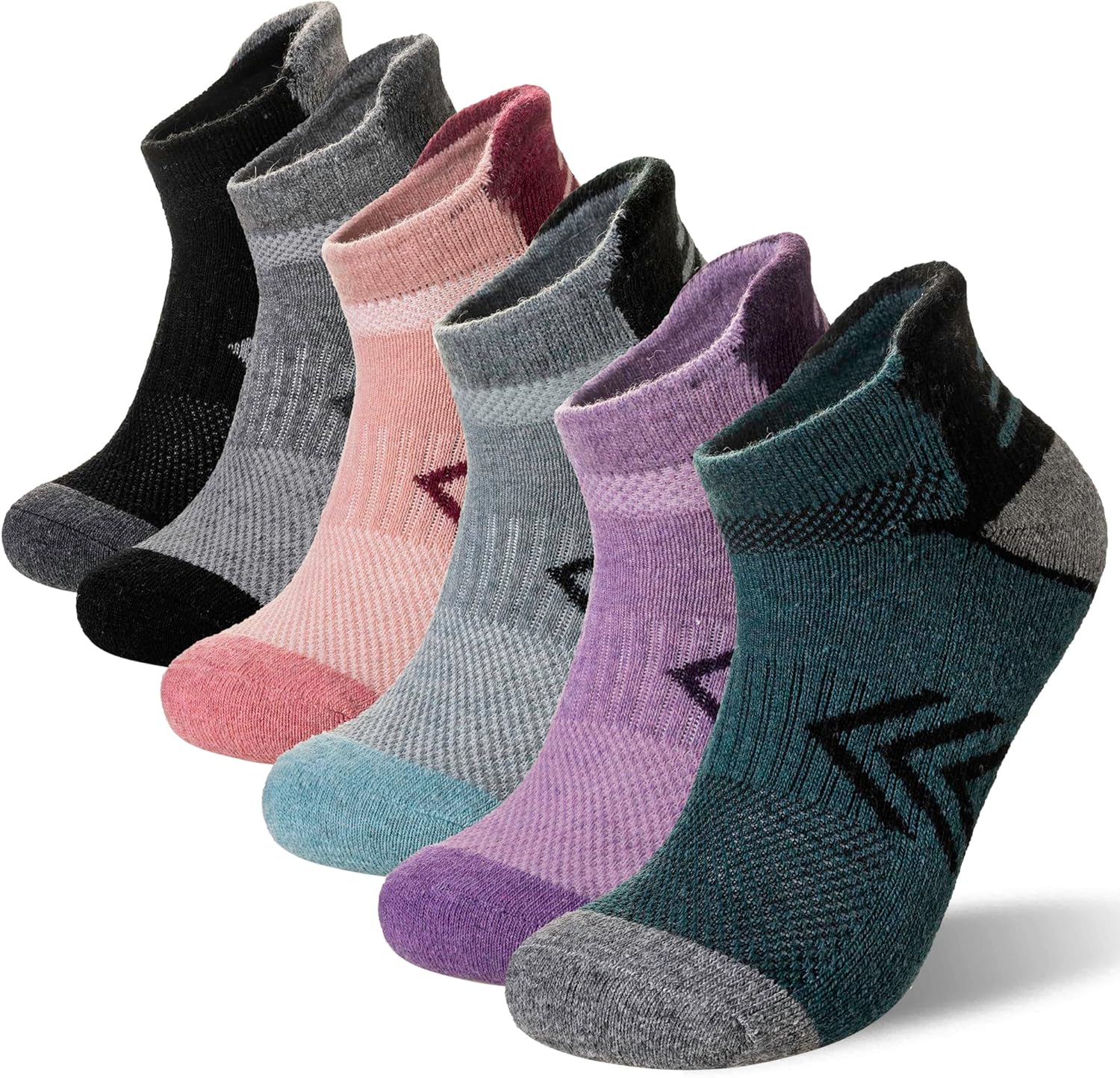 Velice Merino Wool Ankle Hiking Running Socks for Women Compression Thick Athletic Cushion Breathable No Show Socks 6 Pairs