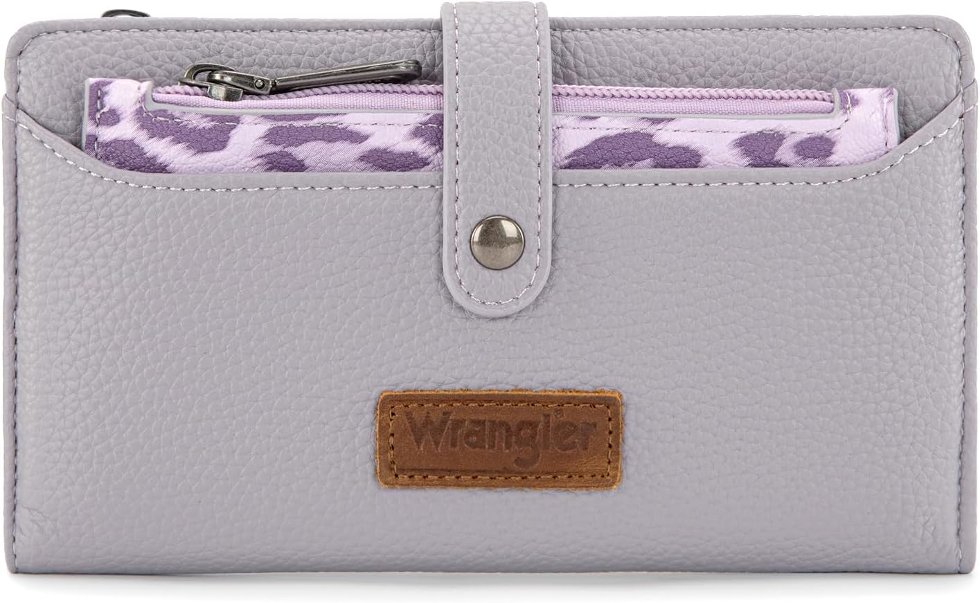 Montana West X Wrangler Purple Wallet for Women Bifold Wallets, Card Cases & Money Organizers Ladies Female Leopard Print Wallet Western Travel Clutch Wallets with Double Coin Purses