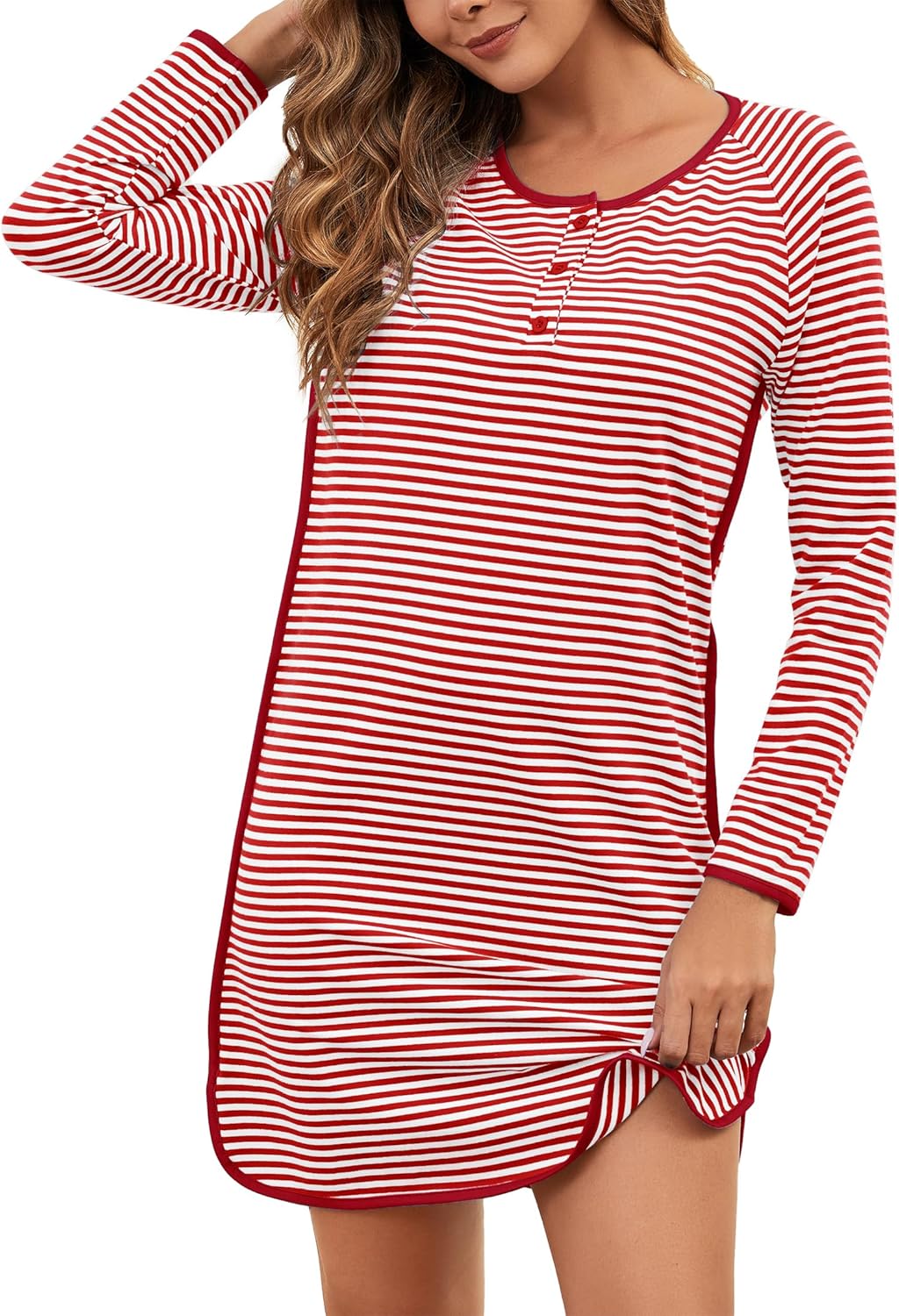 VibeVista Nightgowns for Women Soft Cotton Striped Sleepwear Sleep Shirts Long Sleeve Crew Neck House Dresses Night Gown