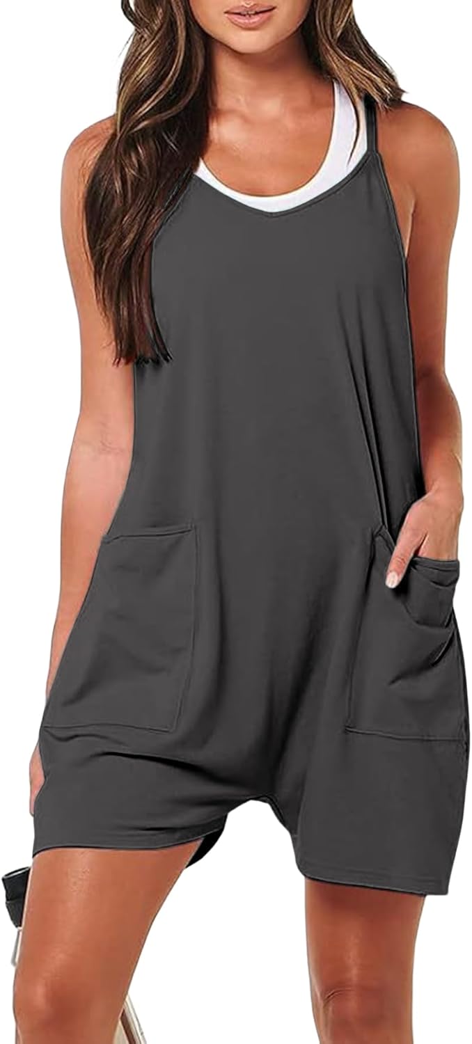 Rompers for Women Summer Casual Sleeveless Spaghetti Strap Shorts Overalls Jumpsuit with Pockets DarkGreyS