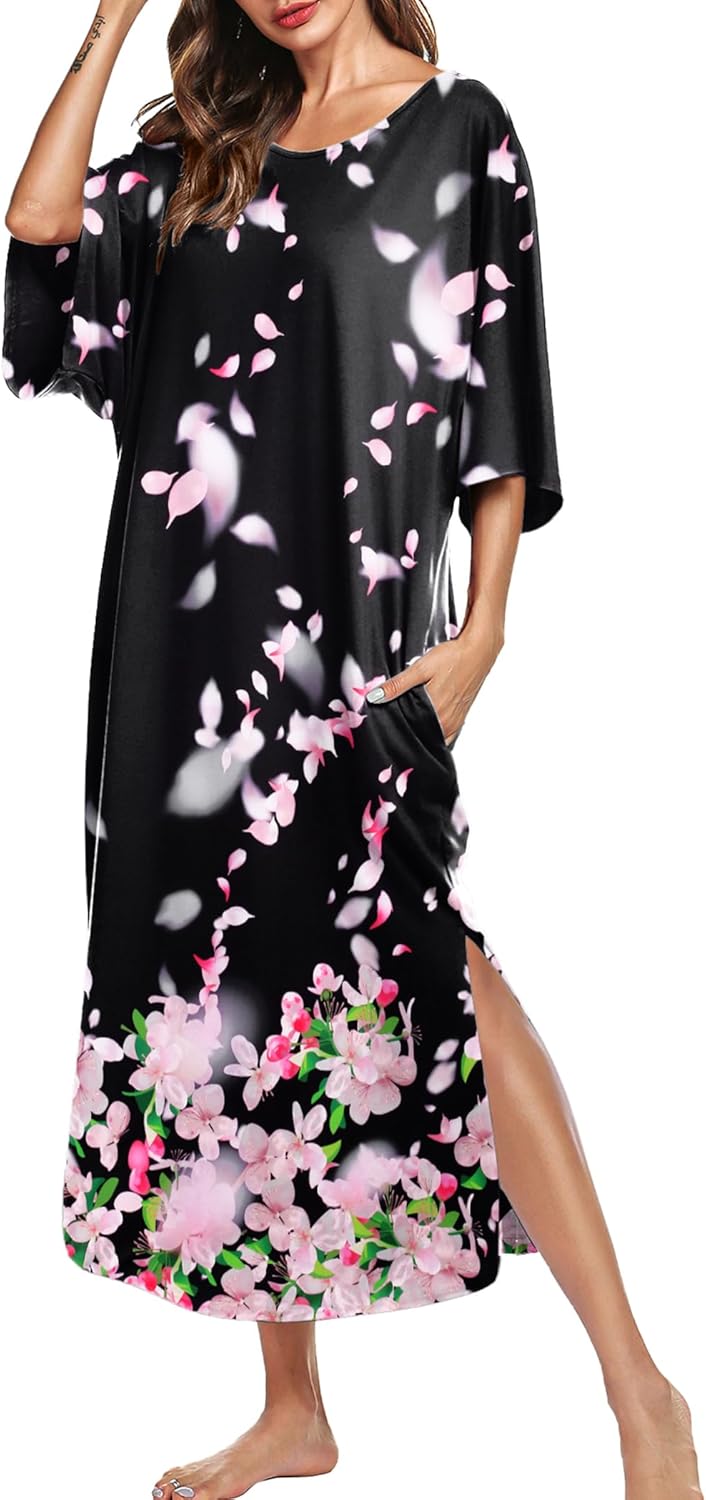 Ekouaer Women's Nightgown Short Sleeve Sleepshirt Long Loungewear Casual Maxi Lounge Dress House Dresses with Pockets
