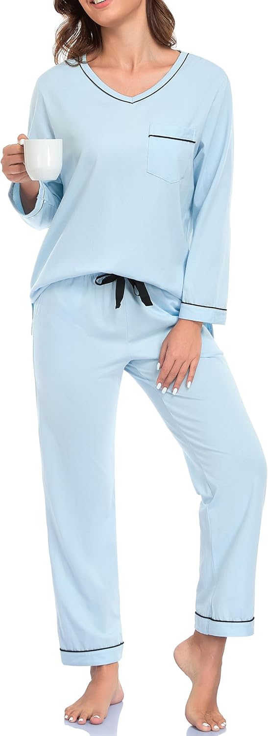 EA'S SECRET 100% cotton Pajamas for Women Long Sleeve Top with Pants 2 Piece Soft Lounge Sleepwear with pocket