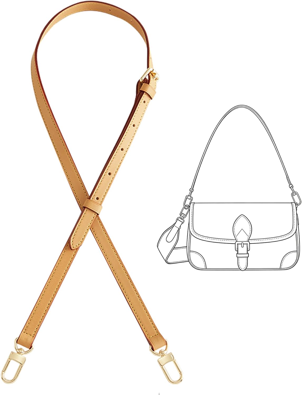 - Adjustable Size & Comfort Fit : Vachetta leather strap features an adjustable length from 35.4 inches to 47.2 inches (90-120 cm), allowing you to wear it as a shoulder strap or a crossbody. The strap width is 0.6 inches (1.5 cm)—ideal for comfortably carrying your bag’s weight without digging into your shoulder. Total length includes sturdy metal snap hooks for easy attachment