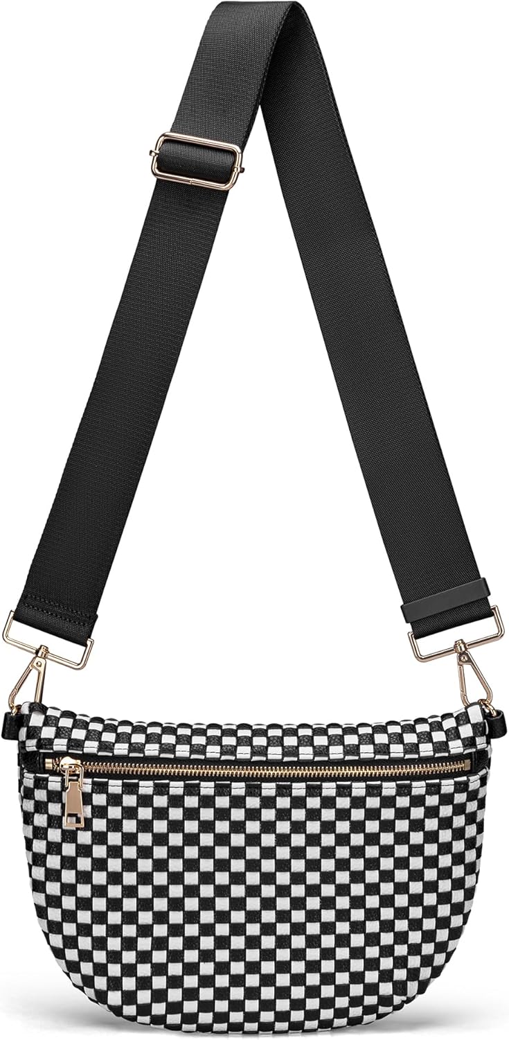 Woven Crossbody Bag Stylish Checkered Shoulder Bag for Women Vegan Leather Fanny Packs Bum Bag Sling Purses