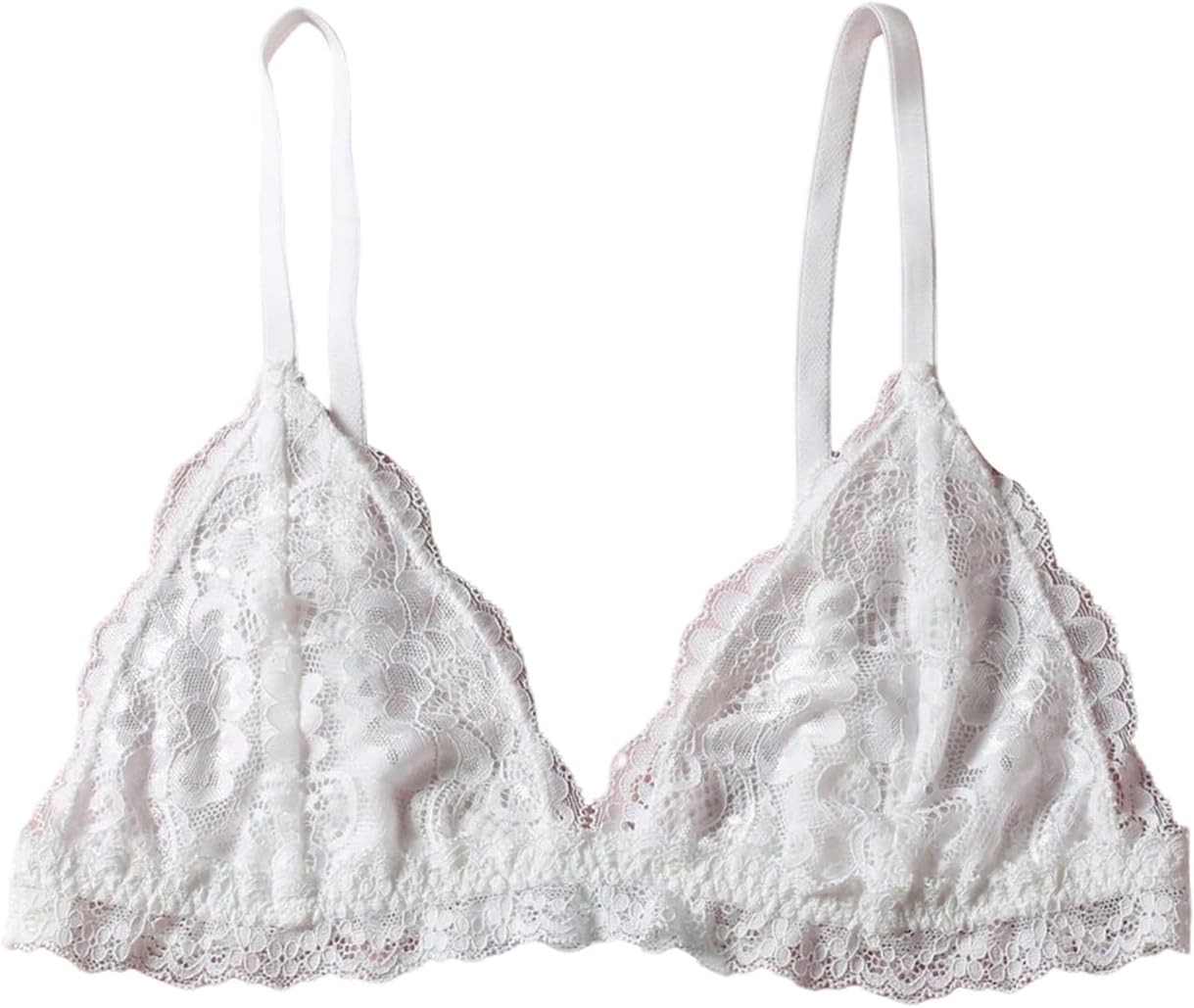 SOLY HUX Women's Lace Bralettes Deep V Neck Wireless Unpadded Triangle Bra Lingerie
