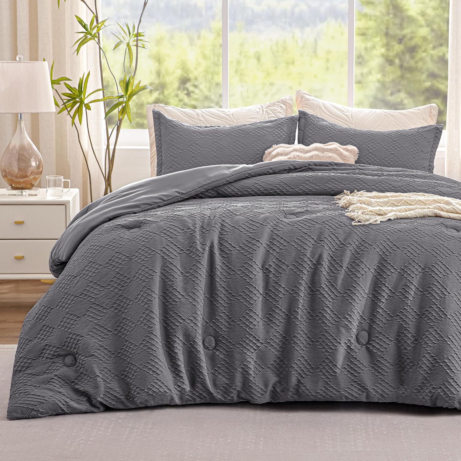 - Elegant Diamond Waffle Pattern: The design of this comforter is inspired by the timeless simplicity of waffle weave pattern.The comforter features a sophisticated diamond waffle jacquard pattern crafted with intricate detailing. The showcases textured design creates a stunning 3D effect, adding depth and elegance to your bedroom decor. This timeless pattern is perfect for elevating the style of any space, whether modern or traditional.