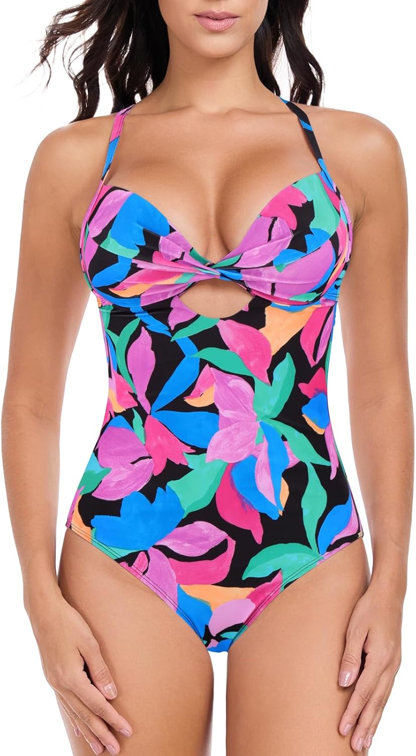 RELLECIGA Women’s Push Up One Piece Swimsuit Twist Front Cutout Adjustable Straps Swimwear