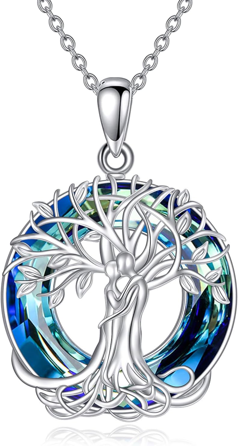 KQF Tree of Life Necklace for Women 925 Sterling Silver Lotus Chakra/David Star Pendant Abalone Shell/Crystal Life Tree Jewelry for Girls