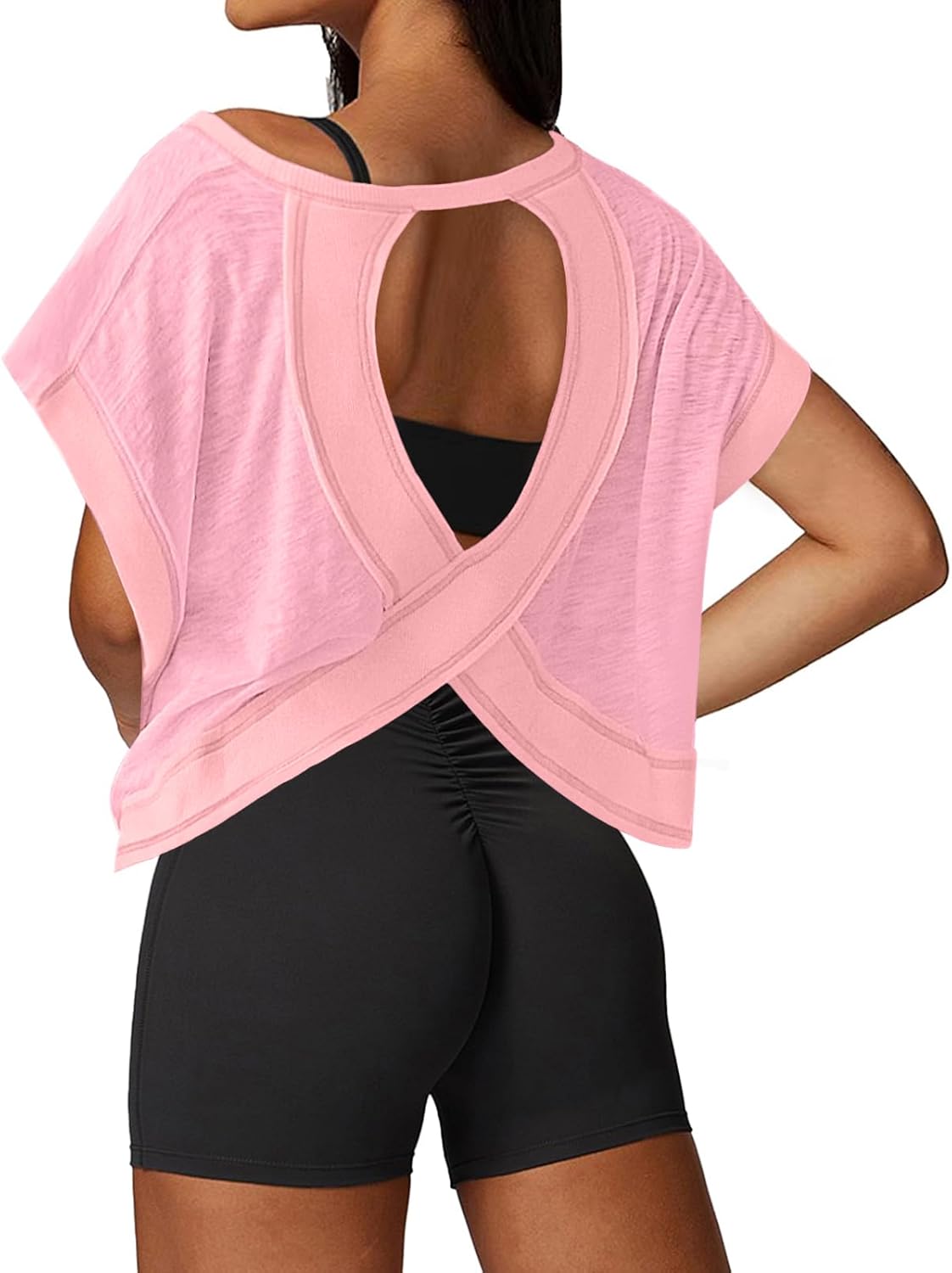 UNIANKIYA Open Back Workout Tops for Women Loose Fit Athletic Crop Tee Short Sleeve Gym Running Yoga Shirt