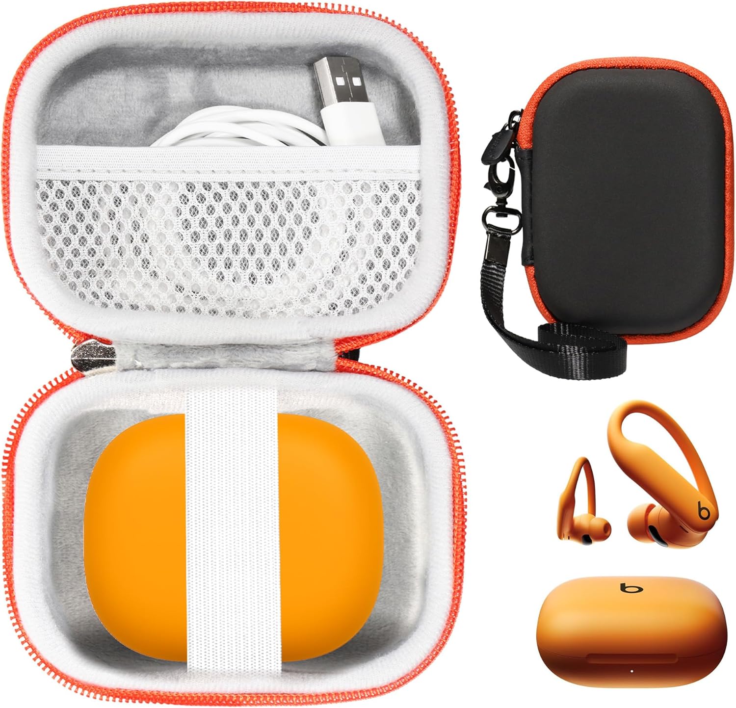 CaseSack Case for Beats Powerbeats Pro 2 Wireless Bluetooth Earbuds - Noise Cancelling (Black with Orange Zip)