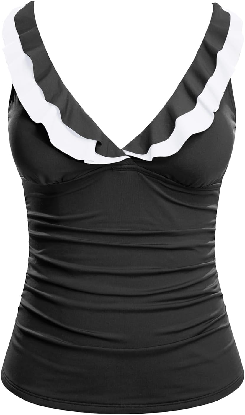 Yonique Women's Tankini Top Only Tummy Control Bathing Suit Top Ruffle Swimsuit Top V Neck Swim Tank Top No Bottom